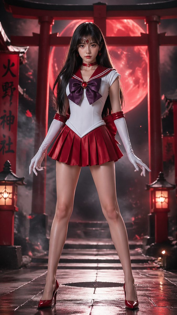 日本美少女戰士月光仙子真人風格,搭配服裝的背景,全身照